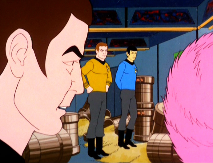 I really enjoyed this episode because we got to see two of my favorite non-regular characters, Koloth and Cyrano Jones. And of course there were the tribbles..everybody’s favorite intergalatic pet. I found myself laughing so hard at Spock’s “We could always throw tribbles at them.” line because it’s one of the few attempts at humor that the Vulcan atttempts to pull off and he does it in such a wry manner, you wonder if he’s being sarcastic. I think that “More Troubles, More Tribbles” is probably one of the better episodes of the animated series. At least so far. It’s one of my favorites, for certain.