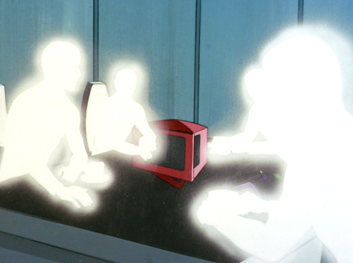 Every member of the bridge crew turns bright white, as if they are being surrounded by a powerful light. Everywhere on the ship, people are starting to glow and shimmer. Something is happening, but what? Down on the surface, the blue light striking the satellite gets stronger and a volcano shoots lava and smoke high into the air.