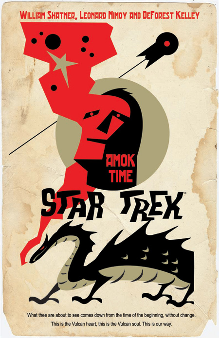 Ortiz: This is a tougher choice than last month, but I might have to go with “Amok Time.” This one is a bit on the conceptual side, as you can probably tell by the image of the Enterprise. I think the added elements, like the dragon helps to expand upon the TOS universe, the way the Gold Key comics did. The dragon can also be viewed as a representation of Spock’s “burning” need.